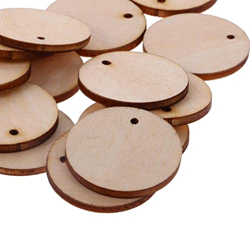 MagiDeal DIY Incompiuto 100Pcs Rotonda Pezzi di Legno Fetta con Buco 30mm Accesorio Arte Craft