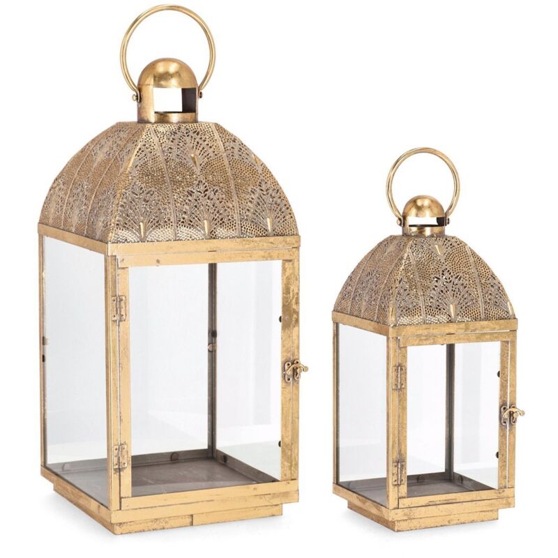 Le lanterne decorative Larjam sono un set di tre stupende lanterne realizzate in metallo e vetro di alta qualità. Queste lanterne sono il complemento perfetto per aggiungere un tocco elegante e accogliente a qualsiasi ambiente. La loro struttura solida e resistente in metallo garantisce una lunga durata nel tempo, mentre il vetro trasparente permette alla luce di brillare in modo luminoso e naturale. Le lanterne sono dotate di un'apertura con coperchio scorrevole che facilita l'inserimento e l'accensione delle candele al loro interno. Il design delle lanterne Larjam è estremamente raffinato e curato nei minimi dettagli. Le linee eleganti e i dettagli finemente lavorati sulle pareti in metallo donano un tocco di classe e stile a ogni ambiente in cui vengono posizionate. Queste lanterne decorative sono l'ideale per creare un'atmosfera romantica e intima sia all'interno che all'esterno della casa. Possono essere appese con facilità o posizionate su tavoli, credenze o camini per dare un