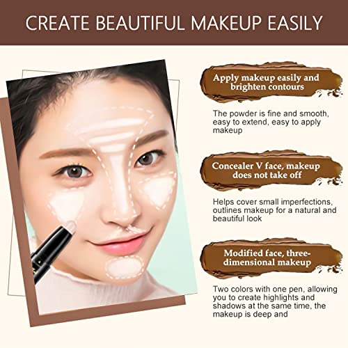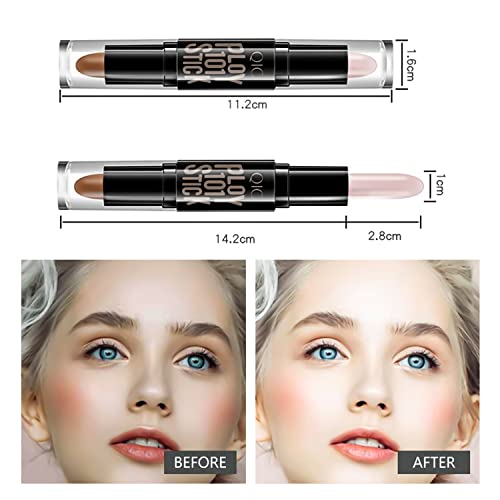 DESIGN 2 IN 1: Contouring viso stick è facile e portatile per il tuo trucco quotidiano, adatta non solo ai professionisti ma anche ai principianti, lo stick per il contorno a doppia estremità è facile da trasportare e da applicare per il miglior contouring per un aspetto naturale.