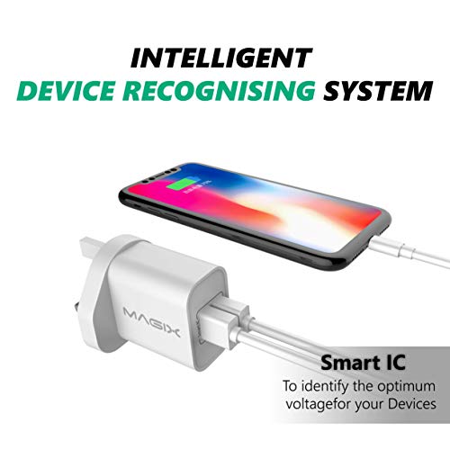 Magix Caricatore Doppia porta USB da muro, (5V-2.4A + 5V-1.0A) output massimo 5V-3.4A 17W Ricarica rapida (Presa UK)(Bianco)