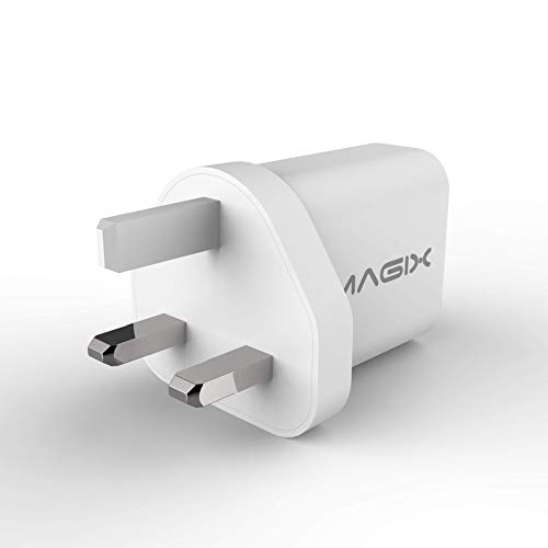 MAGIX Caricatore PD Quick Charge 3.0 18W 3A da muro, USB Type-C, AC 100-240V to DC 5V 9V 12V (Compatibile con Qc 1.0 2.0)(Presa UK)(Bianco)
