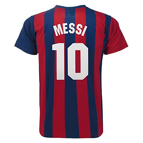 Maglia da Calcio Ufficiale Blaugrana Stagione 2021 2022. Maglia Neutra Personalizzata con Lionel Messi Numero 10. Modello Autorizzato Ricordo Tifosi Taglie da Adulto e da Bambino. (XL)
