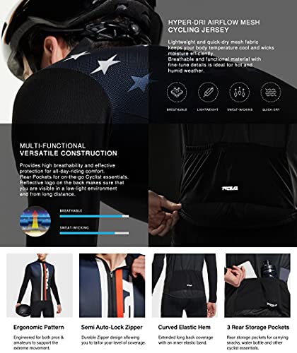 TSLA Maglia da Ciclismo da Uomo, Maniche Lunghe, ad Asciugatura Rapida, Traspirante, rifrangente, con 3 Tasche Posteriori, MCT22 1Confezione - Stelle E Strisce, XXL