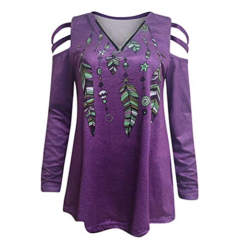 Maglia da donna con chiusura lampo, a maniche lunghe, con scollo a V, senza spalline, alla moda, da street, casual, larga, a maniche lunghe, viola., XL