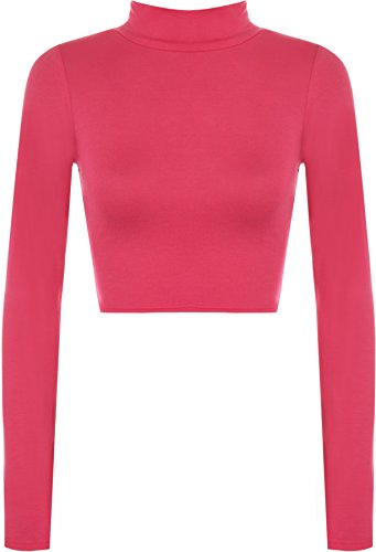 Maglia da donna, con collo alto, a maniche lunghe, tinta unita, corta, elasticizzata