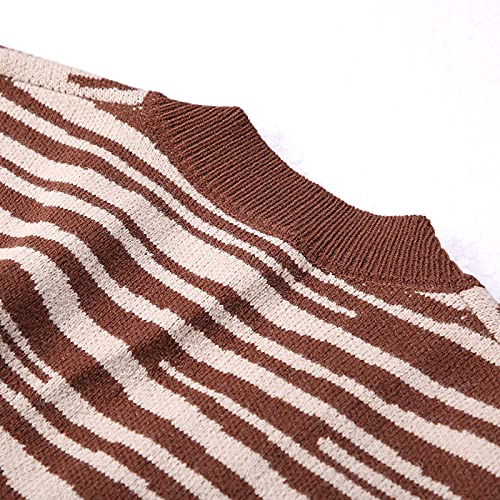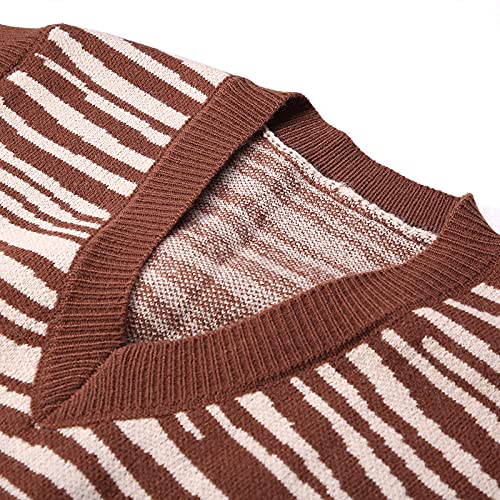 Maglia Top Maglione Donna Scollo A V Senza Maniche,Gilet Lavorato A Maglia Da Donna Maglioni Girocollo Vintage Chic Modello Zebrato Senza Maniche Maglione Gilet Casual Sciolto Gilet Lavorato A Magli