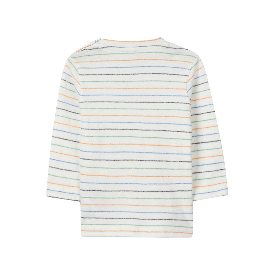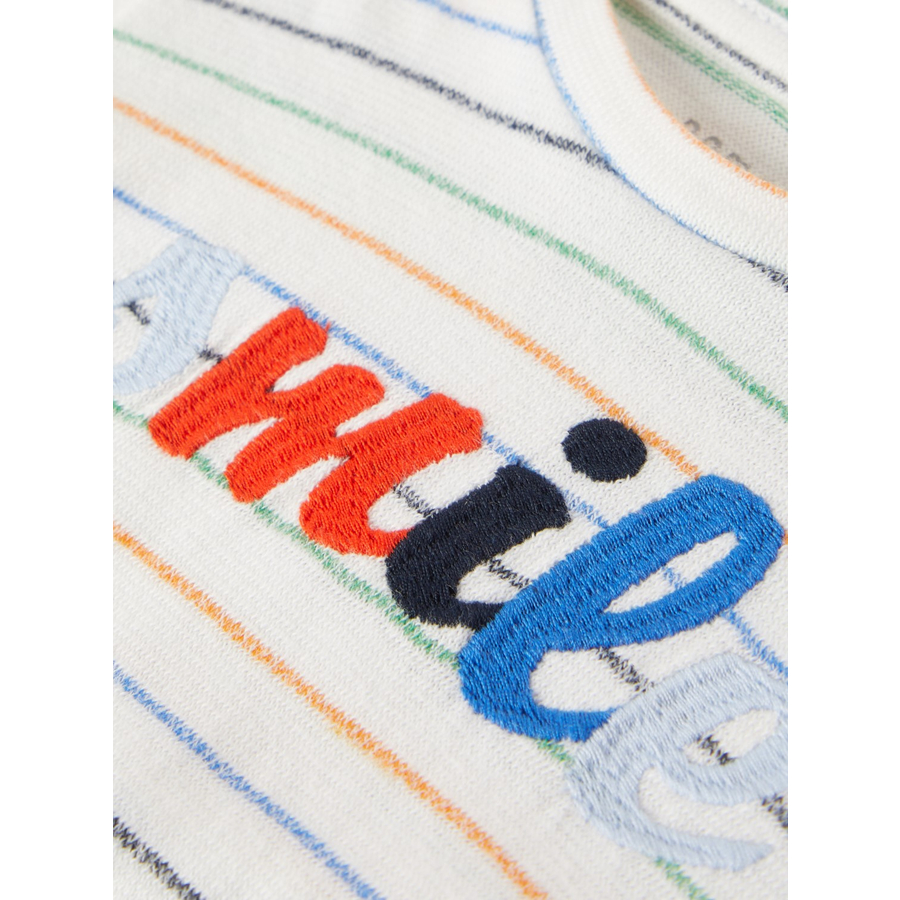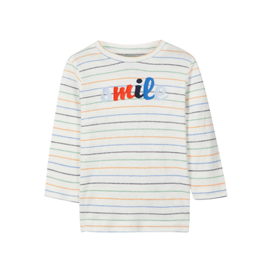 Dalla nuova name it collezione. Camicia a righe a maniche lunghe con freschi ricami di testo sul petto e scollo rotondo. I bottoni a pressione nascosti sulla spalla facilitano l'inserimento e il decollo. Dettagli del prodotto: Materiale: 95% cotone biologico, 5% spandex Lavabile fino a 40 °C