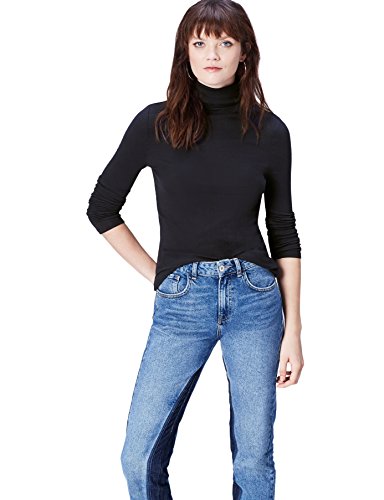 Find. Rib Roll Neck, Maglia a Maniche Lunghe Donna, Nero (Schwarz), Medium