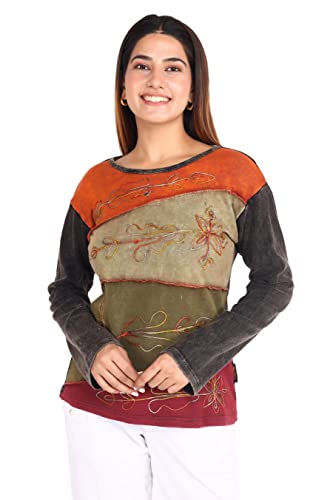 Taglia: S/M (36) maglietta patchwork colorata in stile etnico con maniche leggermente svasate