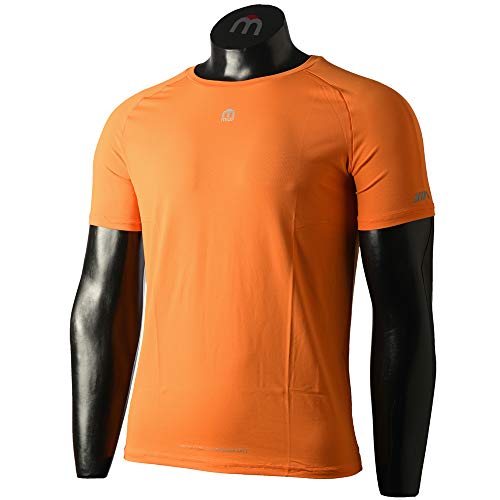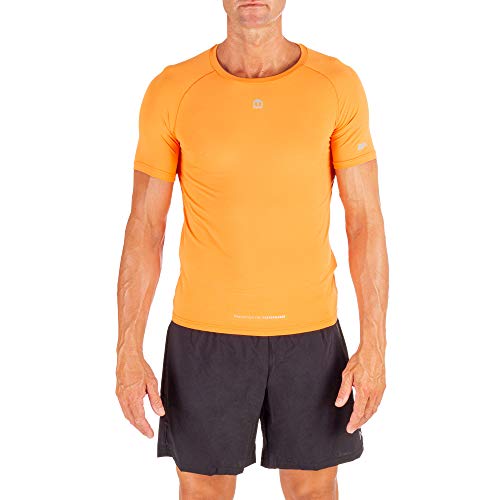 MICO Maglia Tecnica SKINTECH Basic Girocollo Mezza Manica, Tessuto Italiano 360° Glow Ritmo by Brugnoli®, Fresco e Morbido, Tecnologia Seamless per Uomo/Man, in Colore Arancione Chiaro