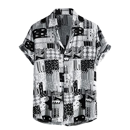 Maglietta da uomo con bottoni, estiva, con stampa, casual, a maniche corte, alla moda, casual, top, Nero, M