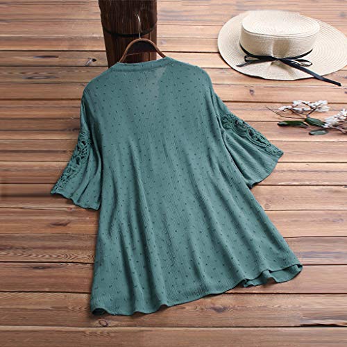 Maglietta Camicetta Donna Taglie Forti Bottone Vintage Scollo a V Manica Corta Bottone in Pizzo (XXL,2- Verde)