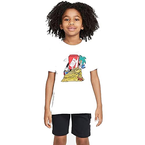 Nike Maglietta Boxy AM90 Sand Castle, Bambino, Bianco con Disegno Stilizzato, 5-6 Anni
