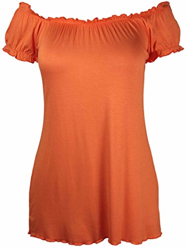 Maglietta da donna con spalle scoperte e arricciate, elasticizzata, taglie forti