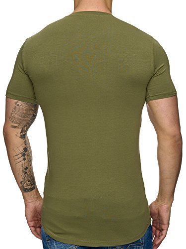 Maglietta da uomo a girocollo, slim fit, da uomo, design militare, a maniche corte in stile militare, con logo cachi M