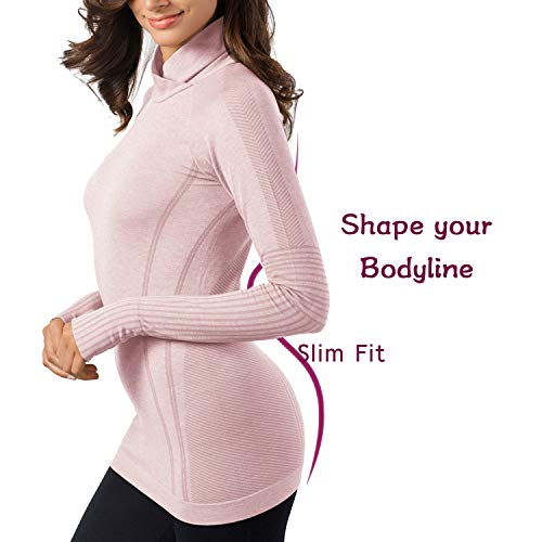 +MD Maglietta a Manica Lunga Comfort Collo Alto da Donna Slim Fit Collo a Cappuccio Termico con Fori per i polliciLightPinkX-Large