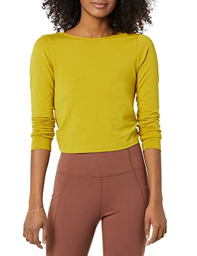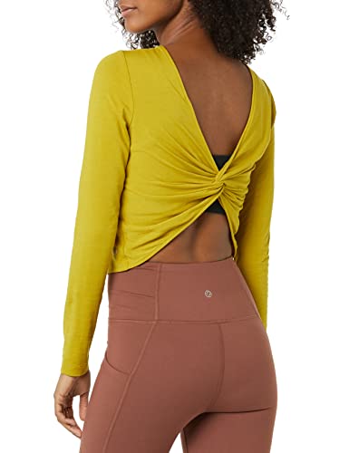 Core 10 Maglietta da Yoga a Maniche Lunghe con Nodo Posteriore Corto in Morbido Cotone Pima Donna Taglia Comoda, Giallo Senape Scuro, XXL Plus