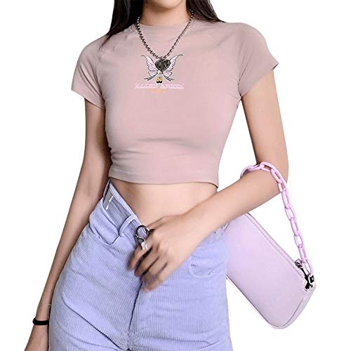 Y2K - Maglietta a maniche lunghe con stampa a forma di cuore, per donne e ragazze, girocollo Colore: rosa. S