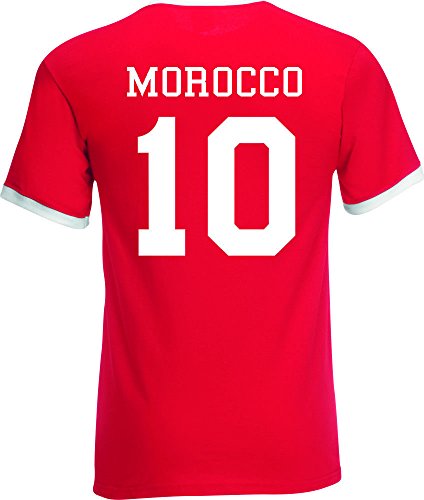Maglietta da uomo del Marokko Morocco, stampa su entrambi i lati, con nome e numero, disponibile in diversi colori Colore: rosso L