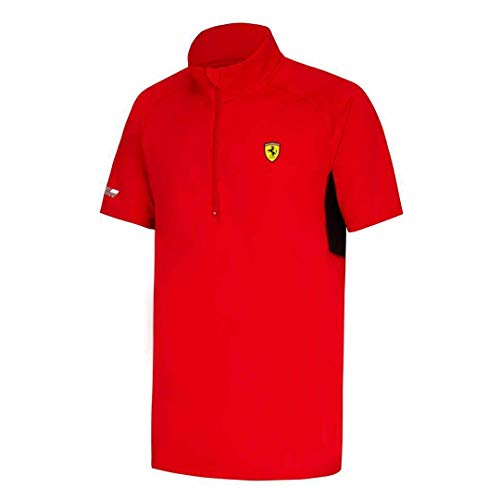 Ferr ari - Maglietta da uomo con mezza zip, Rosso, L