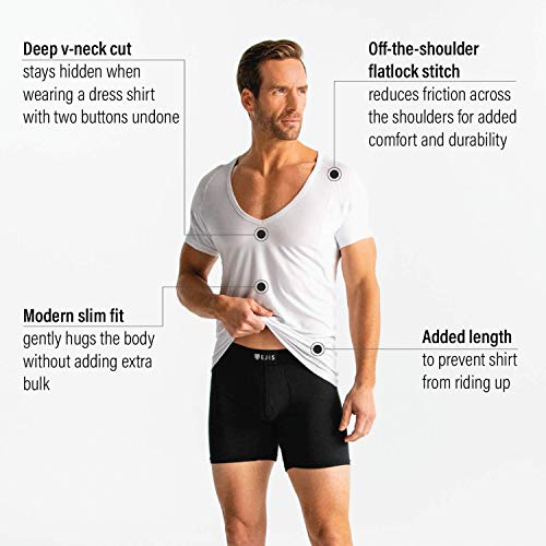 Ejis Maglietta da Uomo a Prova di Sudore, Scollo a V Profondo, Argento antiodore, Micro Modale (L, White)