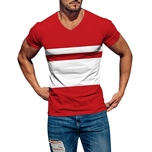 Maglietta da uomo Sale con scollo a V, slim fit, a maniche corte, casual, da uomo, Colore: rosso, M