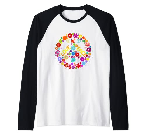 Maglietta con scritta "Peace Sign" Love anni '60 '70 Tie Dye Hippie Maglia con Maniche Raglan