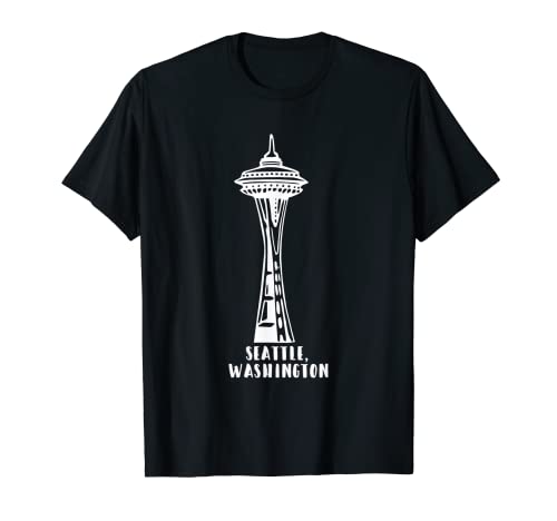 Questa maglietta presenta un design minimalista dell'iconica torre di osservazione dell'ago spaziale di Seattle.