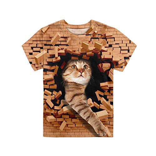 HUGS IDEA Maglietta unisex girocollo manica corta pullover top età 3-16 ragazzi ragazze t-shirt Muro rotto gatto 7-8 Anni