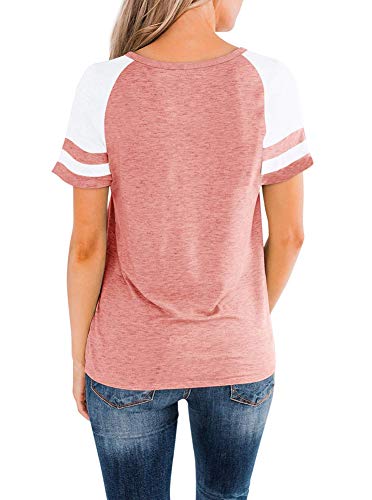 Ihot Magliette Casual da Donna Magliette Larghe a Maniche Corte Color Block Magliette da Donna Pullover Top Tunica Estate-Rosa Corallo-Small