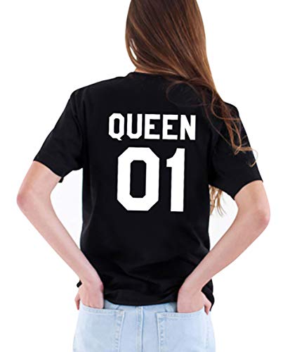Magliette a maniche corte con scritta “King” e “Queen”, 1 pezzo, ideali per coppie, Nero-Queen, S