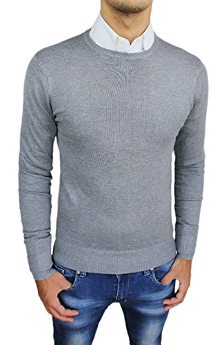 Maglio Pullover Uomo Grigio Chiaro Maglione Slim Fit Maglia Golf Casual Girocollo (XXL)