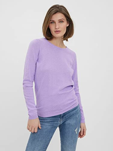 Vero Moda Maglioncino Girocollo Manica Lunga con Micro Trama Aperta (S, Lilla)