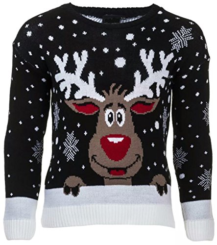 Maglione da bambini a tema Natale con Rudolph la renna, pullover natalizio 3 - 14 anni, taglie 36 - 42