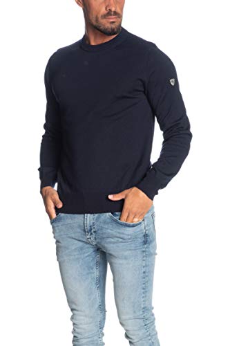 EA7 Maglione Girocollo Blu con Logo, M, Blu