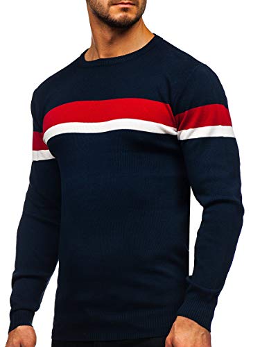 BOLF Uomo Maglione Maglia Pullover Scollo Rotondo Leggero Maglia Longsleeve Classic Outdoor Casual Style H2072 Blu Scuro M [5E5]