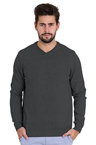 Maglione da uomo a maniche lunghe in cotone con scollo a V, Grigio scuro, S