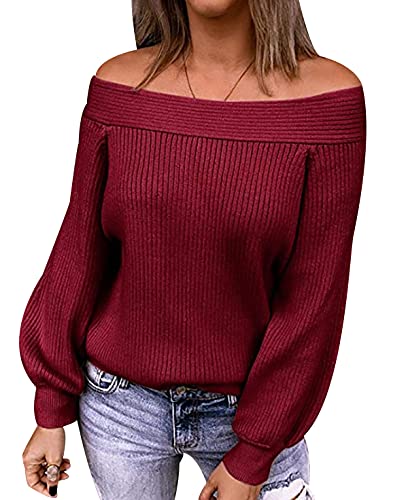 Maglione Spalle Scoperte Donna Maglioni Donna Pullover Maglioncino Maglieria Maglioncini Donna Knit Sweater Women Maglione Oversize Trecce Invernale Intrecciato Donna Jumper Taglie Forti Rosso XL