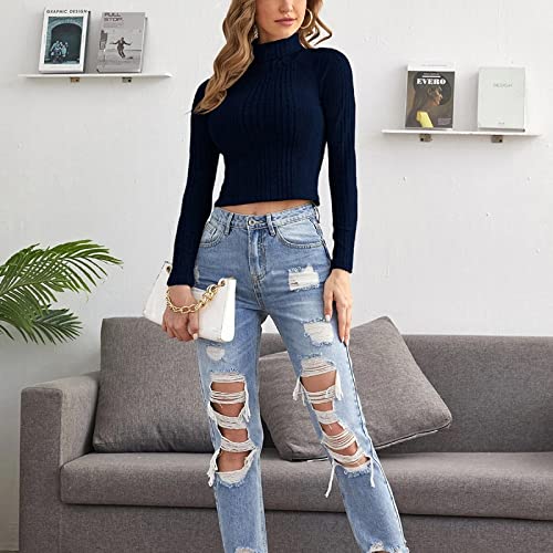 Maglioni Lunghi Donna Pullover per Autunno Inverno Camicia Elegante Donna Y2K Crop Top Collo Alto Abbigliamento Slim T-Shirt Manica Lunga (Black, Medium)