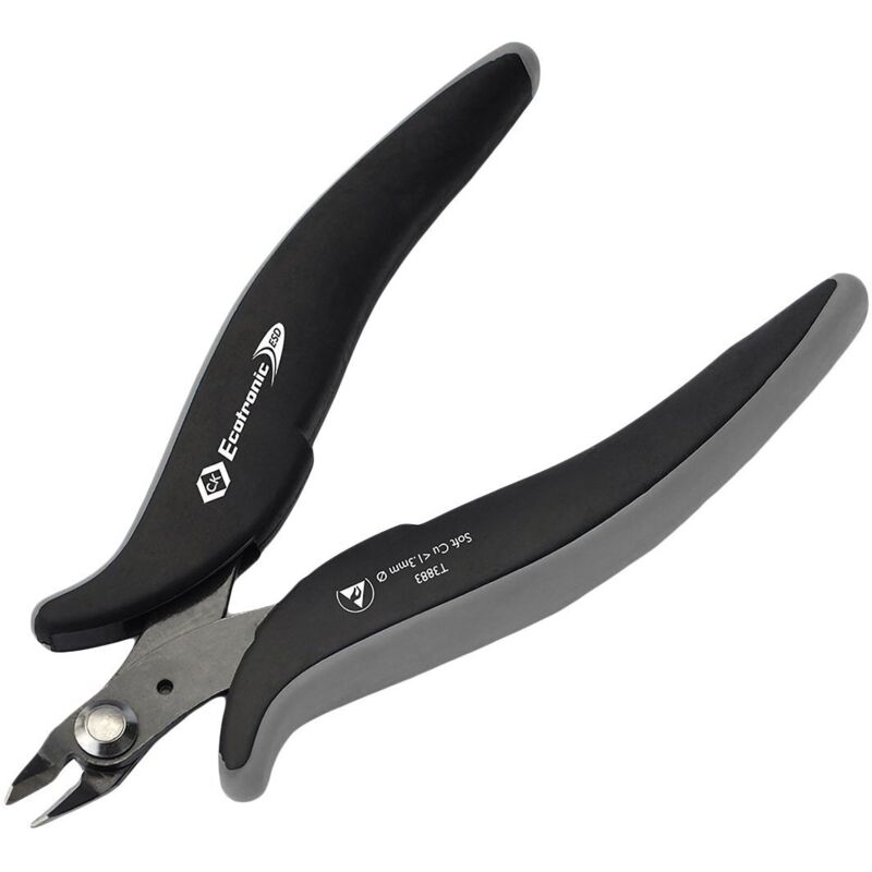 Cutter laterale di precisione della luce per le migliori applicazioni di taglio (ad es. Microelettronica e meccanica fine) Per tagliare i fili di rame morbido fino a 1,3 mm Ø/16awg Testa mini-custing, forma conica Spazio stretto taglio acuto con rettifica di precisione per un taglio a filo klinge in acciaio per utensili speciali, per le prestazioni a lunghe prestazioni indurite manici elettrostatici-resistenza di recitazione 108 maniglie a due componenti in volta Esecuzione per lavori comodi superficie nera -bruciata per protezione della corrosione e apertura ridotta Facile molla di ritorno per un migliore comfort con lavoro ripetitivo articolazione con noleggio stabile in acciaio inossidabile