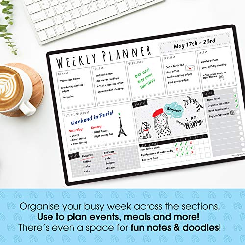 The Magnet Shop Agenda settimanale magnetica TMS/Hai questo formato A3 | Planner per lavagna bianca cancellabile a secco per casa, ufficio o studenti | con 4 penne cancellabili a secco e gomma
