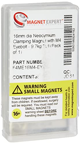 Magnet Expert Ltd - Magnete con gancio a occhiello al neodimio N42, ø 1,6 cm, altezza 1,3 mm, forza magnetica 7,5 kg