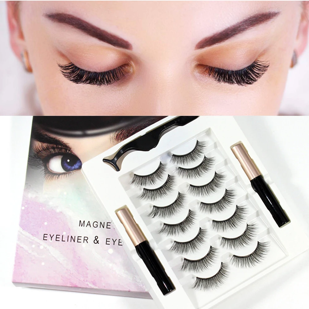 7 Magnet Eyelash Magnetic Liquid Eyeliner&Magnetic False Eyelashes&Tweezer Set Waterproof Long Lasting Eyelash Extension Tools