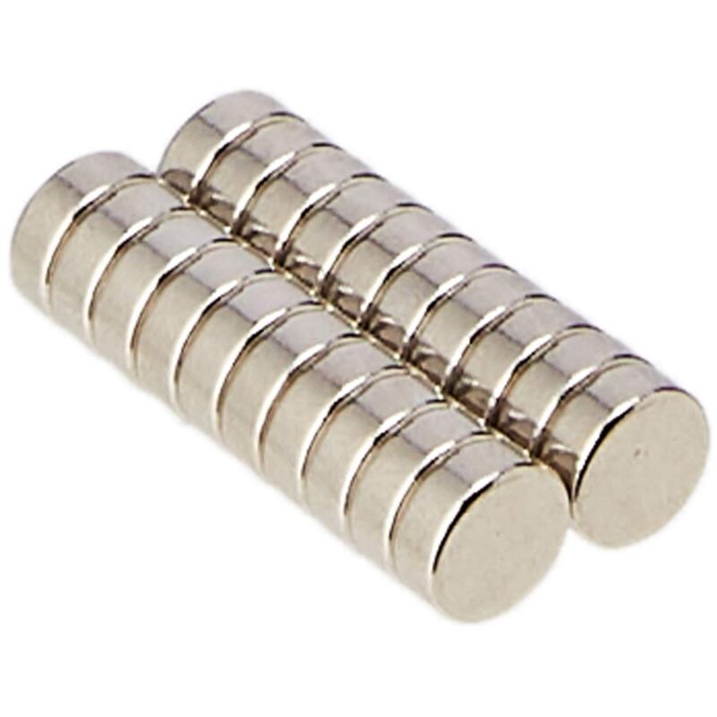 Confezione da 20. - 4 mm di diametro x 1,5 mm di spessore. - Ogni magnete nord e polo sud sono su facce opposte di 4 mm di diametro. - Ogni magnete può sostenere un peso in acciaio fino a 0,36 kg verticalmente dalla faccia magnetica quando è a contatto a filo con una superficie in acciaio mite. - Eccellente resistenza alla demagnetizzazione. - Ogni magnete è rivestito con tre strati di nichel, rame e nichel per migliorare la resistenza alla corrosione e fornire una finitura liscia e pulita. - Questi piccoli magneti a disco neodimio sono spessi solo 1,5 mm, il che li rende ideali per progetti artigianali e di modellistica. - Inoltre, ogni magnete è rivestito con tre strati di nichel, rame e nichel per migliorare la resistenza alla corrosione e fornire una finitura liscia e pulita. - I nostri magneti neodimio sono comunemente utilizzati in applicazioni creative come il design del teatro, la produzione di vestiti, la produzione di mobili, mostre e packaging. Hanno anche molti usi in