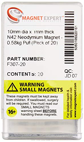 N42 Magneta Neodimio Per Arti, Mestieri, Produzione Di Modelli, Fai -Da -Te, Hobby, Ufficio E Casa - 10mm Dia x 1mm Di Spessore - 0,58kg Di Tiro - Pacchetto Di 20