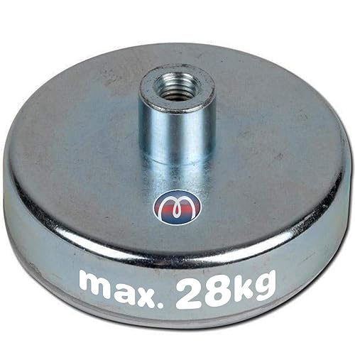 Magnete con base in acciaio in ferrite dura con boccola filettata nella quale possono essere avvitati ganci, occhielli ecc