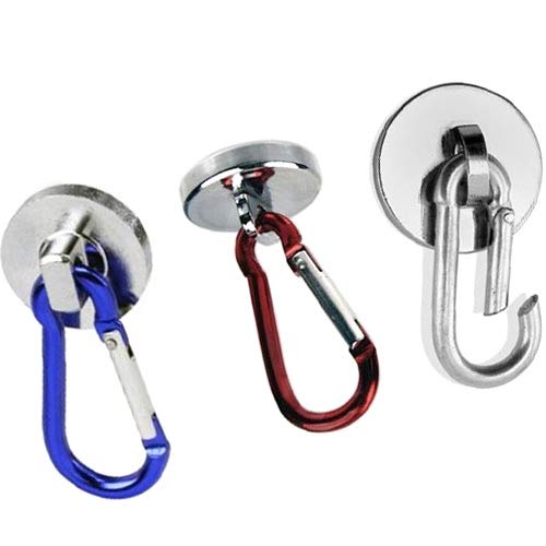 Magnete con base Ø 28 mm con gancio/moschettone - forza 20 kg, colore:azzurro