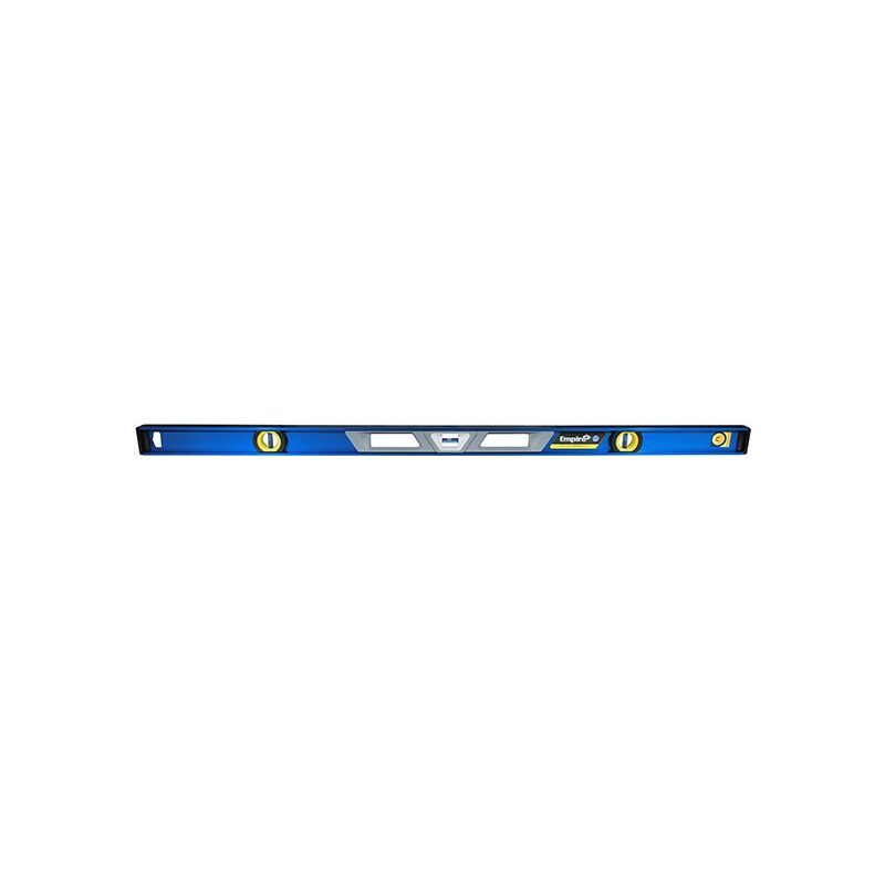 Dettagli: Precisione garantita: 0,5 mm/m in tutte le posizioni di livellamento. Leggibilità superiore: grazie alle 2 grandi strisce blu che si riflettono alle due estremità della bolla (sistema True Blue). Telaio in alluminio. Grandi maniglie. 3 fiale ad alta leggibilità. Garanzia: GARANZIA A VITA contro i difetti di fabbricazione: i livelli Empire True Blue sono garantiti privi di difetti di materiale e lavorazione. In caso di problemi con la livella True Blue, Empire la sostituirà con una nuova. Se la livella viene mantenuta correttamente, manterrà la sua precisione a vita. I telai piegati annullano la garanzia. Specifiche tecniche: Lunghezza: 120 cm