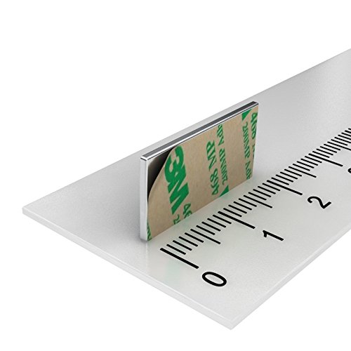 MTS Magnete - Magneti a parallelepipedo, al neodimio, 20 x 10 x 1 mm, N35, magnetizzazione 1 mm, autoadesivi, 100 pz