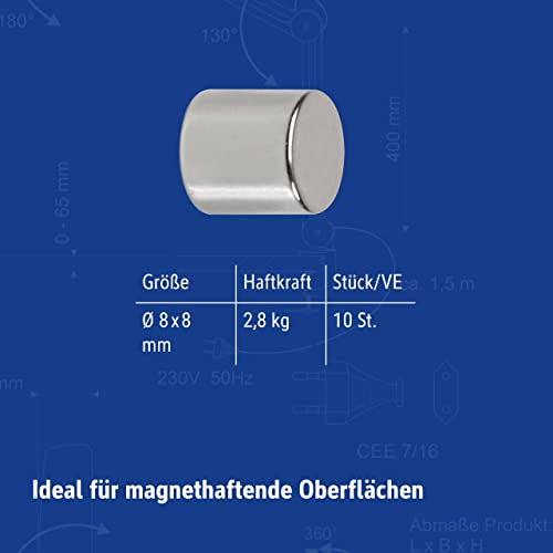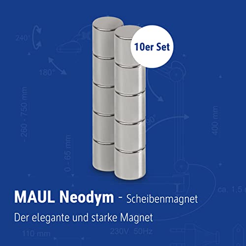MAUL Magnete al neodimio - Magnete ad alta forza adesiva per un uso versatile - Magnete rotondo dal design elegante e moderno - Ø 8 x 8 mm - argento chiaro